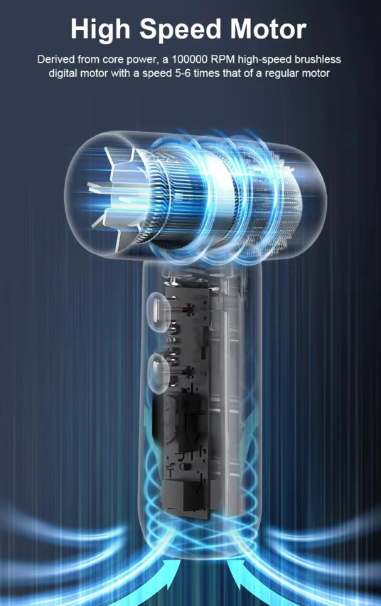 Suflanta Turbo cu Lumina UV, model BST-AP-03, este un dispozitiv portabil de mare viteza, echipat cu motor brushless de 100000 RPM si lumina UV integrata. Conceputa pentru utilizare atat in exterior, cat si in interior, genereaza un jet puternic de aer pentru aprinderea focului, curatarea prafului, indepartarea picaturilor de apa sau umflarea obiectelor gonflabile. Carcasa din ABS asigura rezistenta si greutate redusa, iar bateria interna permite utilizarea fara cabluri. Lumina UV de 3W ofera suport pentru uscare si igienizare punctuala.
