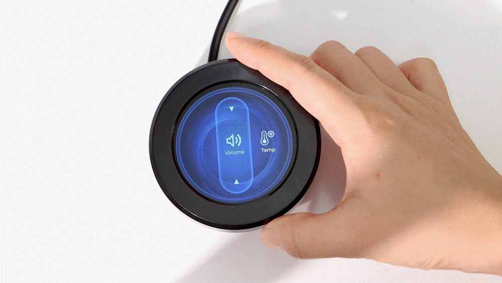 Suporta atingere capacitiva si intrare prin buton rotativ. Butonul permite rotire in sens orar, antiorar si apasare completa, avand o senzatie fluida si multiple moduri de interactiune.